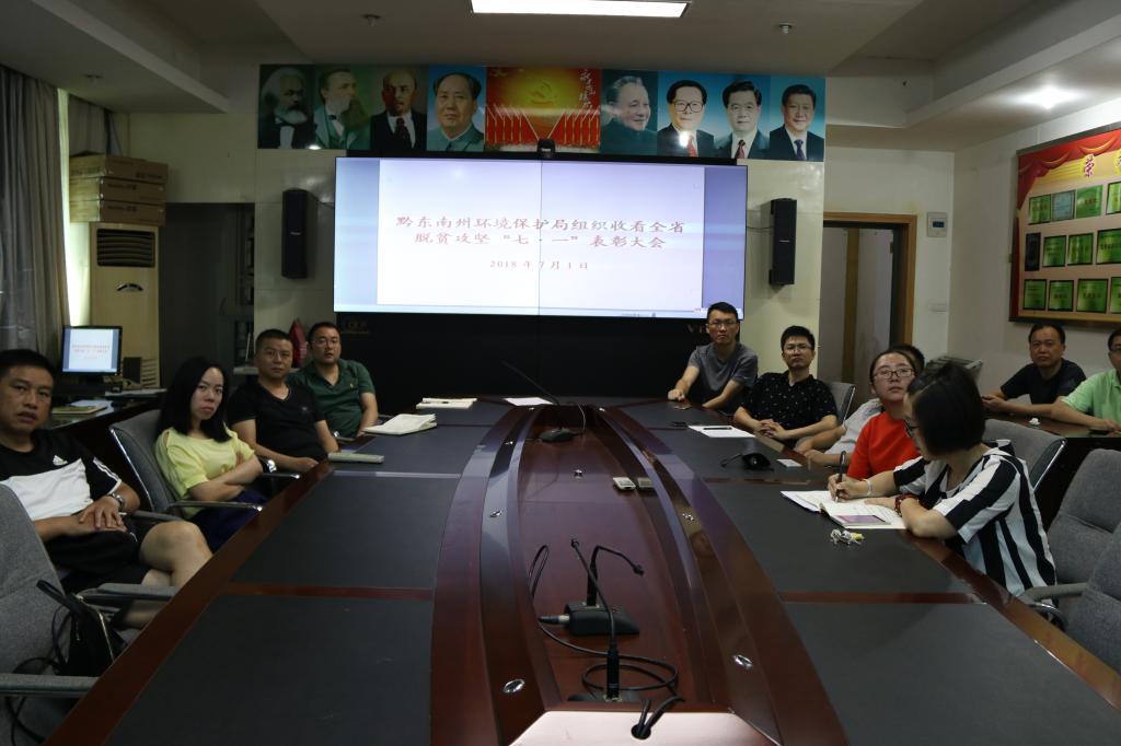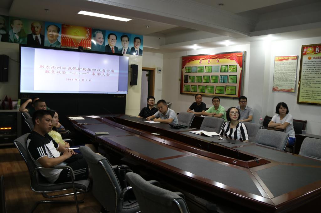 7月1日上午,州环保局组织党员在局会议室集中收看全省脱贫攻坚“七·一”表彰大会。
