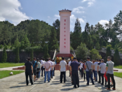 下午15时,在党总支书记潘瑞玲同志的带领下,一行人来到纪念碑前。在音乐伴奏下,全体党员高唱《国歌》,接着,两位党员代表将写着“革命烈士永垂不朽,州环保局党总支敬挽”的花圈,庄严地敬献在纪念碑前,全体肃立,默哀3分钟,寄托哀思,向长眠于此的革命先烈,表示深切怀念和崇高敬意。礼毕后,全体党员面向鲜红的党旗,在领誓人的带领下,坚定地举起右拳,重温入党誓词。