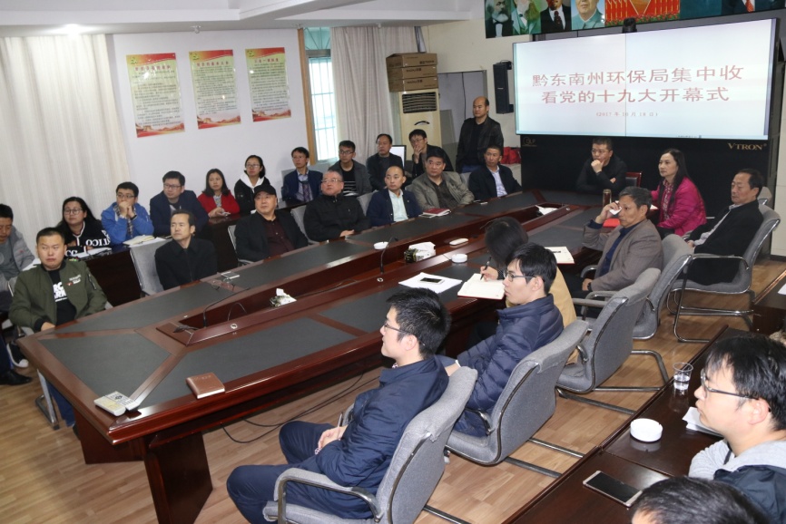 州环保局组织全体干部职工,采取集中观看、网络观看等形式观看开幕会。观看同志纷纷表示十九大报告振奋人心、顺应民意,在今后工作中,将结合岗位职责,认真抓好十九大精神贯彻落实,以实际行动推动环境保护各项工作开展。