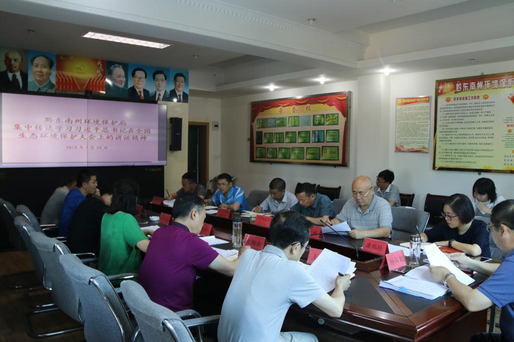 5月24日,州环保局党组书记、局长杨汉钦主持召开局党组(扩大)会议,传达学习习近平总书记在推动长江经济带发展座谈会上的重要讲话精神;传达学习习近平总书记在全国生态环境保护大会上的重要讲话精神,李克强总理在会上的讲话精神,韩正副总理的总结讲话精神;传达学习省委五步工作法;传达学习州委书记桑维亮在全州第四期州管干部专题研讨班上的辅导报告精神,传达学习州委副书记、州长罗强在全州第四期州管干部专题研讨班上的辅导报告精神。对深入学习贯彻落实作出安排部署。